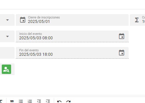 1. La fecha de cierre de inscripción debe ser anterior a la fecha de inicio del evento.