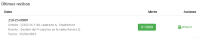 Ya queda creado el recibo y aparecerá en el listado y el Organismo o el educador recibirá el recibo por mail a la cuenta que tenga registrado Mi Rincón.