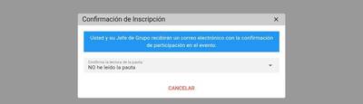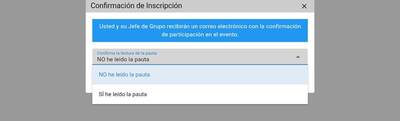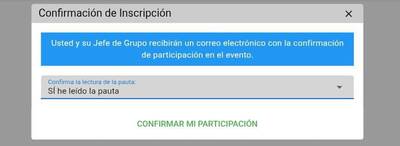 Deberás confirmar la lectura de la pauta, seleccionando “SI He leído la pauta”. Y por último CONFIRMAR MI PARTICIPACION.